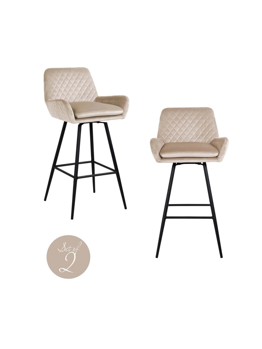 Barová otočná stolička Linsey velvet khaki (Set 2ks)