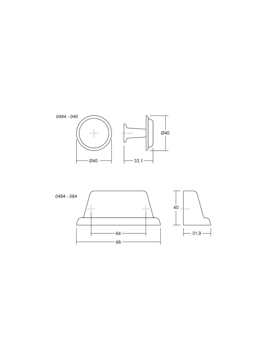 Rozmer: priemer 40 mm / L: dĺžka 98mm / CC: rozteč na skrutky 64mm