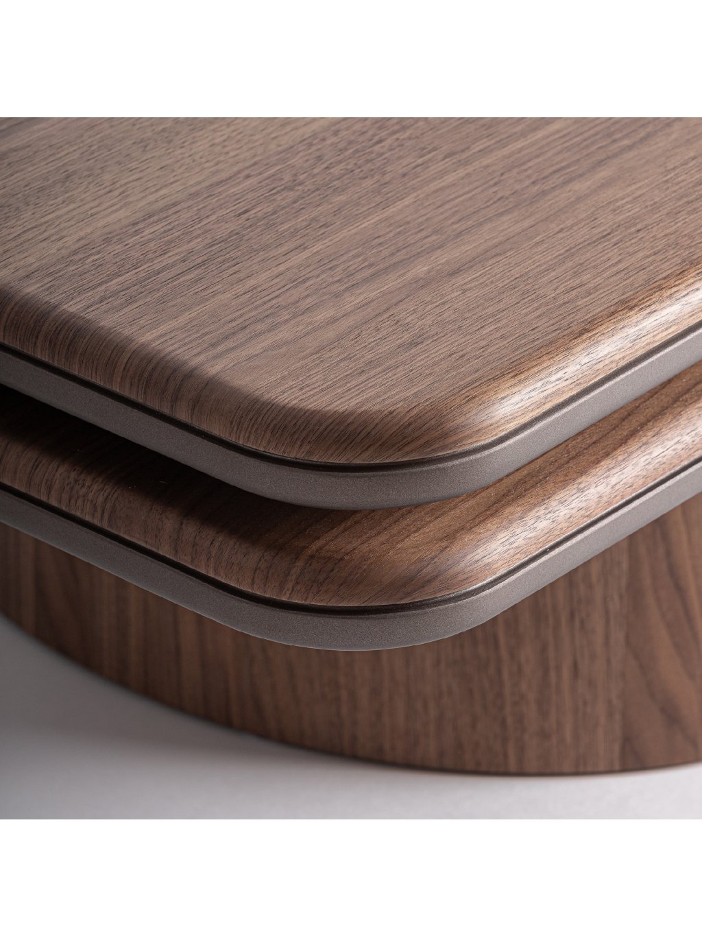Materiál: Orechová dyha v hnedej farbe v kombinácii s hnedým železom