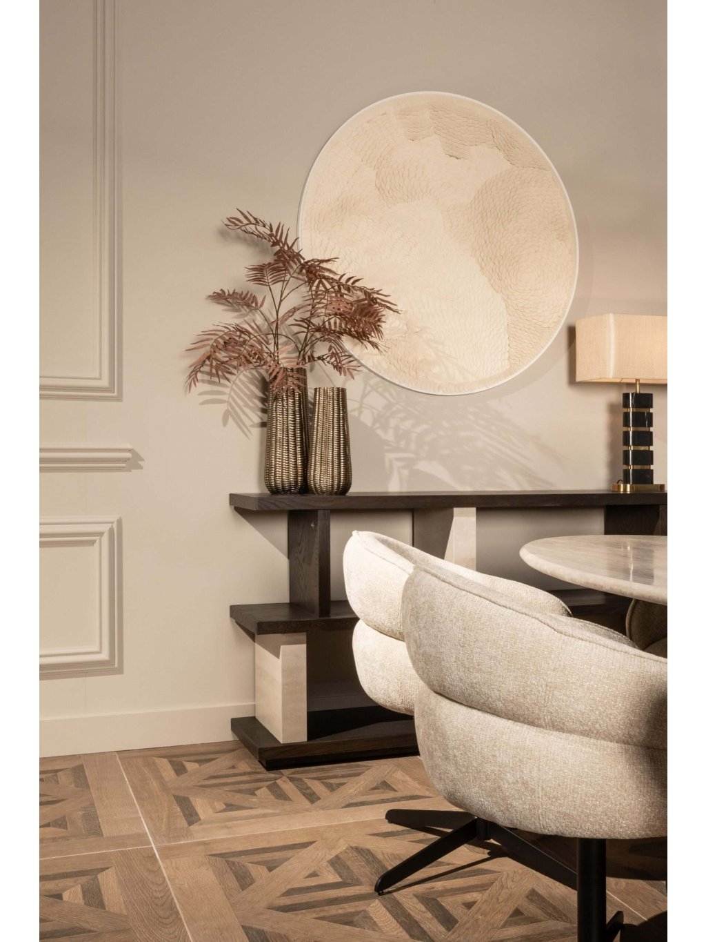 Značka Richmond Interiors je renomovaná holandská spoločnosť, ktorá sa špecializuje na dizajn a výrobu luxusného nábytku a interiérových doplnkov. Richmond Interiors je známa pre svoj jedinečný štýl, ktorý kombinuje moderné a klasické prvky, a vytvára tak elegantné, nadčasové interiéry, ktoré zaručujú maximálny komfort a vizuálny pôžitok.