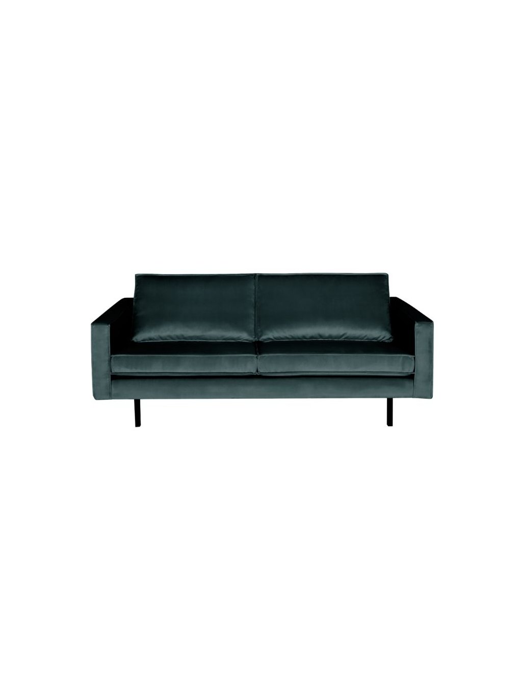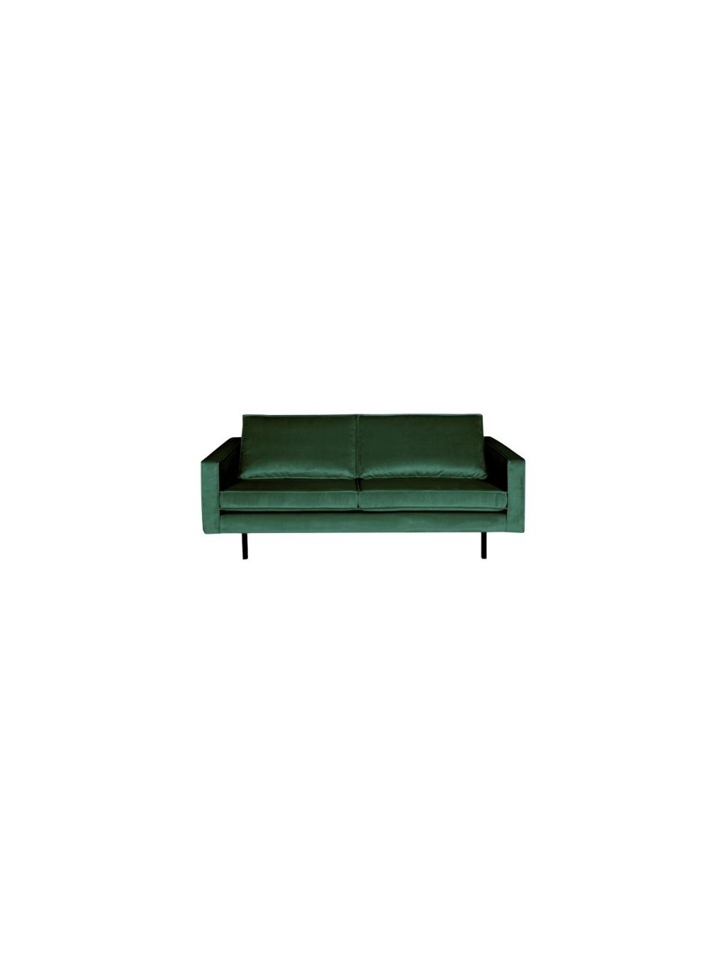 Moderná a elegantná 2,5 - miestna sedačka. Pohodlná sedačka, ktorá pôsobí zamatovo mäkko a ponúka dostatok miesta na sedenie. Tenký rám a zamatové vankúše dajú elegantný vzhľad sedačke. Nohy sú vyrobené z čierneho kovu. Výška sedadla je 45 cm, hĺbka sedadla je 60 cm a výška lakťových opierok je 68 cm.Farba: smaragdovo-zelená