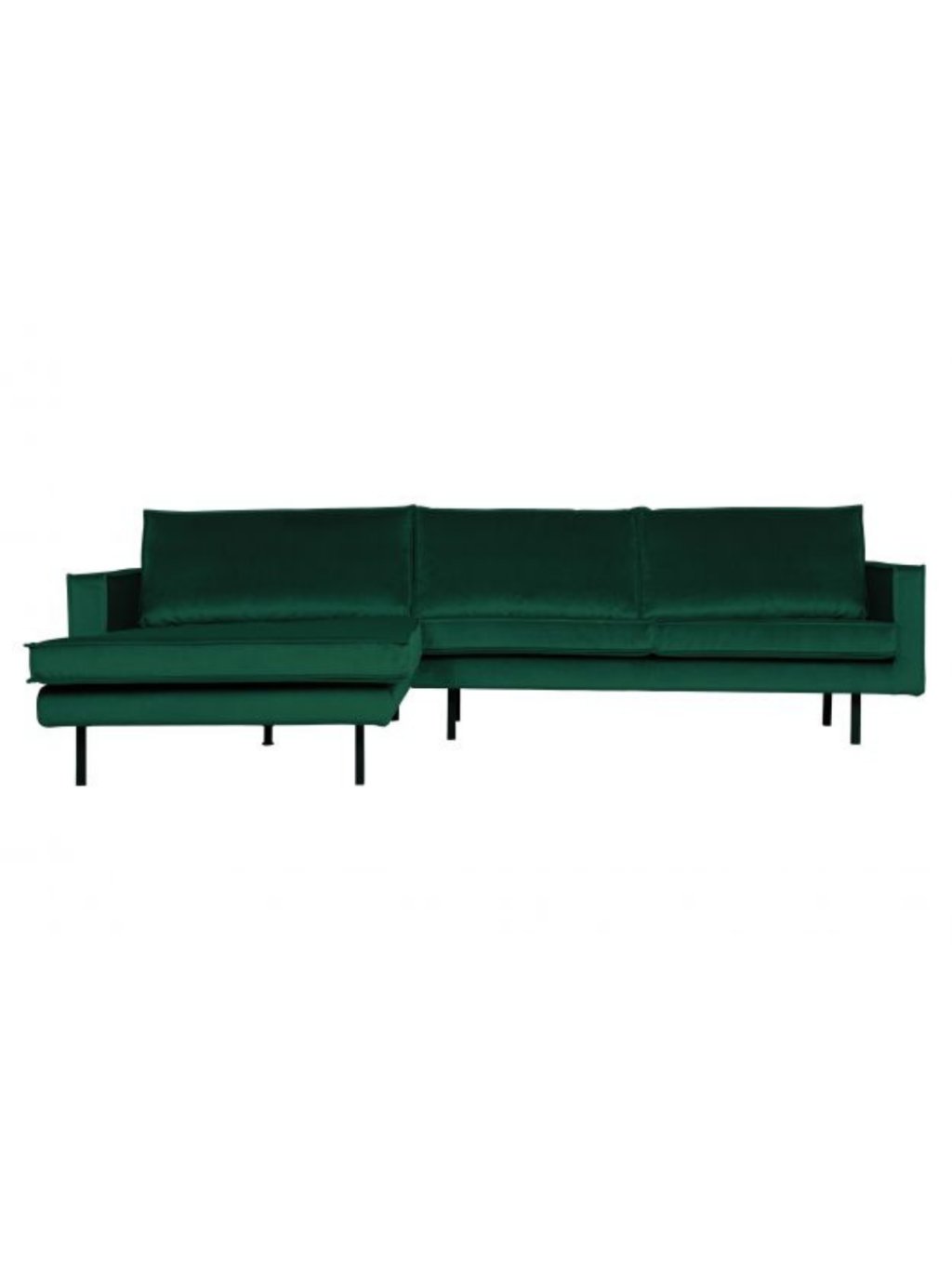Moderná a elegantná rohová sedačka s ležadlom. Pohodlná sedačka, ktorá pôsobí zamatovo mäkko a ponúka dostatok miesta na sedenie. Tenký rám a zamatové vankúše dajú elegantný vzhľad sedačke. Nohy sú vyrobené z čierneho kovu.